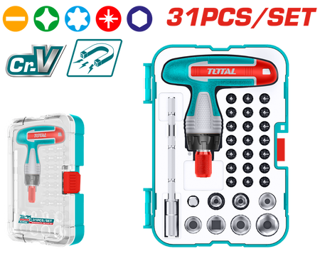 JUEGO DE DESTORNILLADORES PUNTAS INTERCAMBIABLES X 31 PZS SUPER TOTAL (TACSD30316)