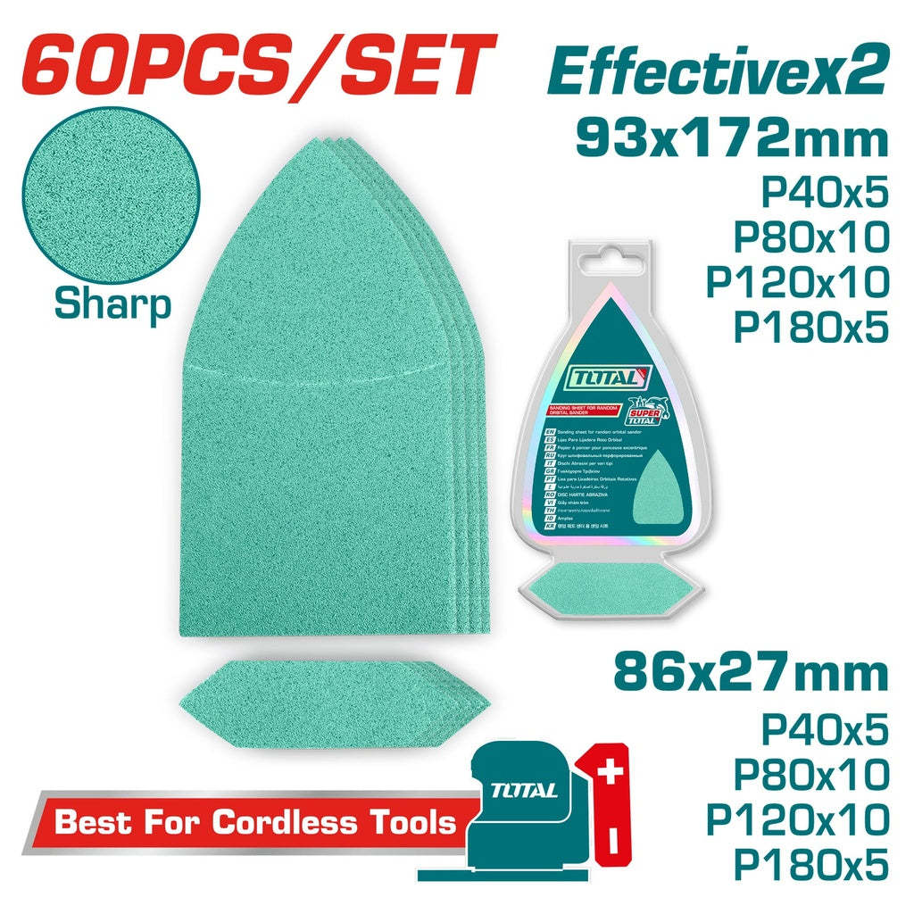 JUEGO DE LIJA X 60 PIEZAS (9.3X17.2CM) INDUSTRIAL TOTAL (TAC938660)