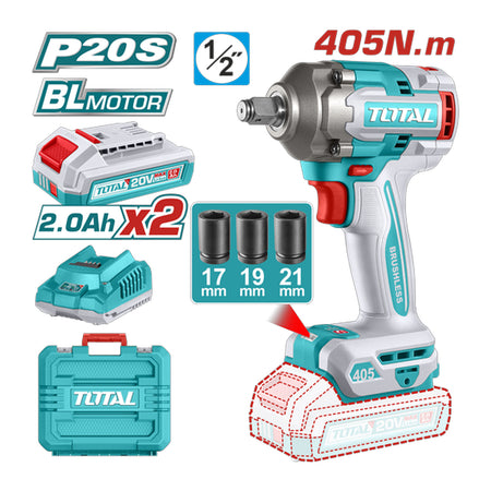 PISTOLA IMPACTO INALAMBRICA 1/2" 20V 405 NM INCLUYE 3 COPAS 17,19,21, 2 BATERIAS 1 CARGADOR(UTIWLI2045)